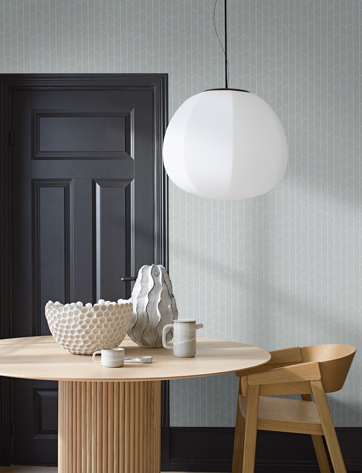 Passar minimalisten med sin bas i trä och textil i varma naturfärger. Kontrasterna i grått och svart skapar en tydlig grafisk stramhet.